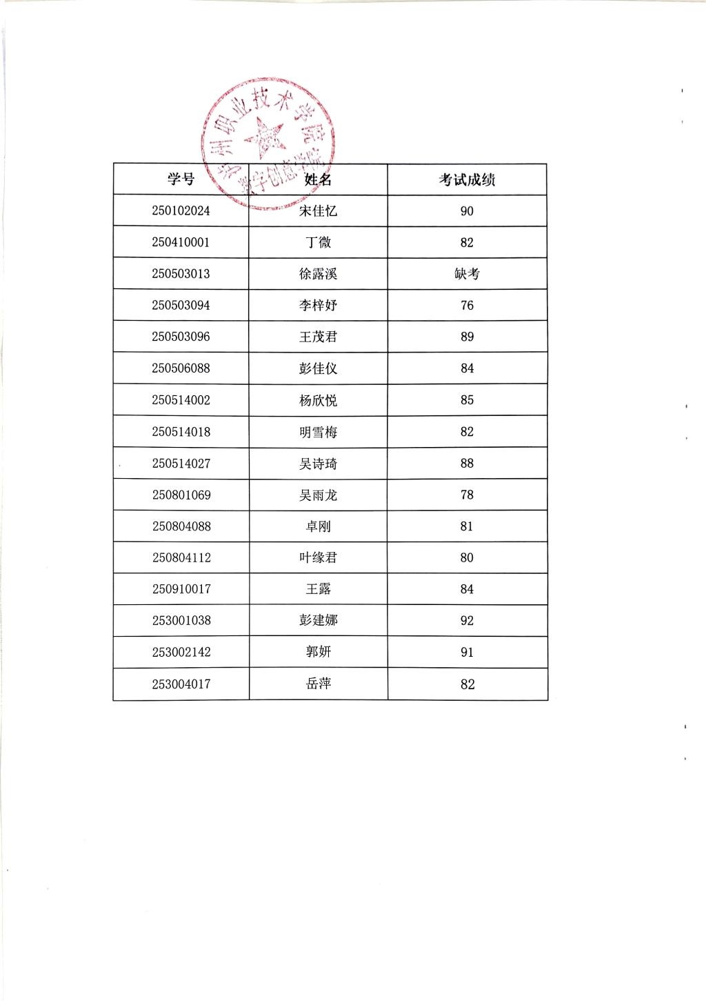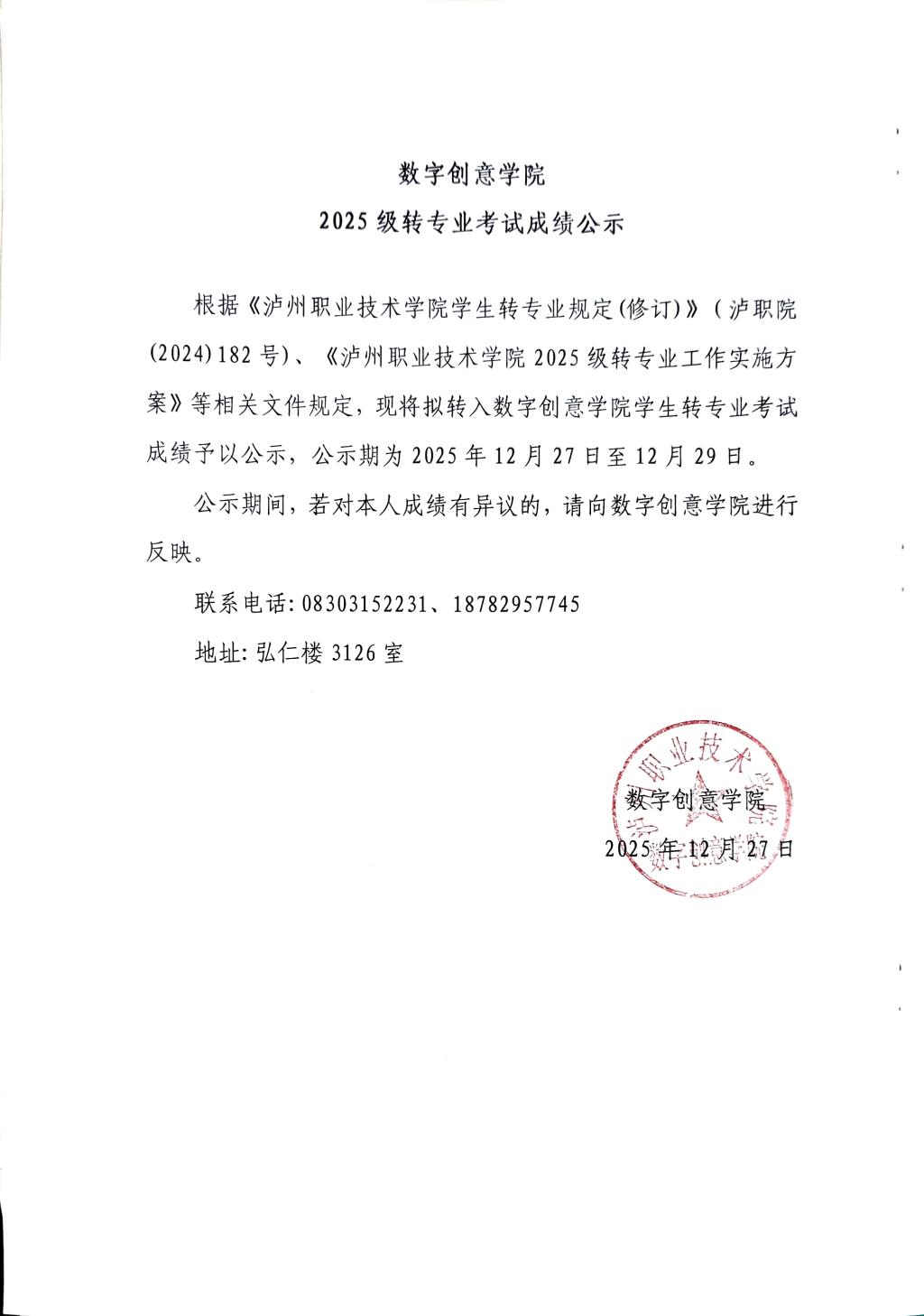 数字创意学院2025级转专业考试成绩公示