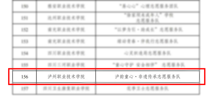 “泸韵童心,非遗传承志愿服务队”立足专业特色,聚焦地方文化传承与青少年美育关怀,长期致力于通过非遗知识普及、传统手工艺体验、乡土文化研学等形式,丰富留守儿童及困境儿童的精神文化生活,在陪伴中传递温暖,在传承中启迪心灵。此次成功入选,既是对团队过往服务成效的肯定,也为团队在更高平台、更广范围内践行志愿服务精神提供了宝贵机遇。