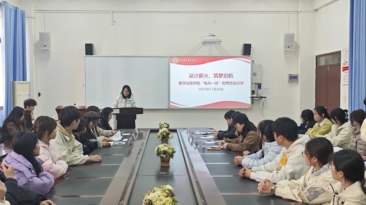为激发学生创作热情,促进跨年级专业交流与分享,11月20日下午,数字创意学院在弘仁楼3230成功举办了以“设计薪火,筑梦启航”为主题的“每月一讲”作品分享会。学院领导、教师代表与各年级学生齐聚一堂,共同见证了一场融汇专业才华与青春热情的学习盛宴。