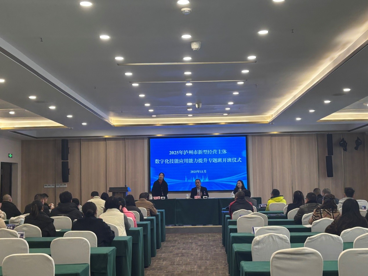 为全面提升我市新型农业经营主体的数字化应用水平,赋能农业农村现代化发展,2025年11月24日,由泸州市农业农村局主办,泸州职业技术学院承办的“2025年泸州市新型经营主体数字化技能应用能力提升专题班”在我校顺利开班。泸州市农业农村局科教与农村人才管理科科长李禄超,泸州职业技术学院数字创意学院党总支书记丁可,以及来自我市四县三区共50名学员参加了开班仪式。开班仪式由数字创意学院院长高媛主持。