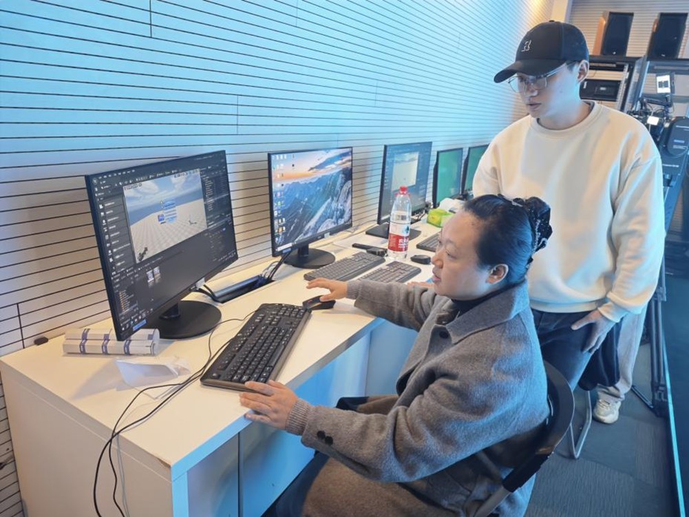 学习聚焦当前先进XR设备的操作规范与虚拟内容部署全流程,两位教师在技术专家指导下系统掌握了设备功能、维护要点以及虚拟项目在XR环境中的移植、优化与调试方法。期间,教师们将学院自主开发的“抗战主题虚拟场景”作为实操案例,在索贝团队支持下成功实现该场景在高端XR设备上的沉浸式流畅展示。